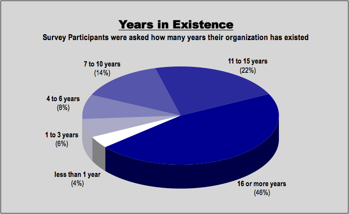 Due to awkward wording of this survey question, there may have been some confusion among the survey participants about whether they were asked to provide the age of their organization or the age of the specific program they manage. A future survey would sharpen this question to assure the responses are comparable.